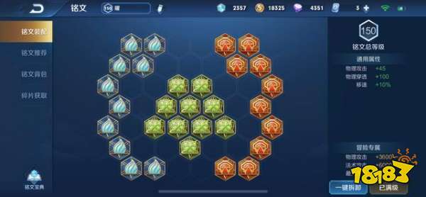 曜的符文还是走战术通用的百穿套路,不同的是蓝色符文的选择。曜位移多灵活,刷野效率高,前期很容易入侵野区,所以这里搭配了增加攻击和移速的隐匿,用来增加曜的机动性和清野效率。