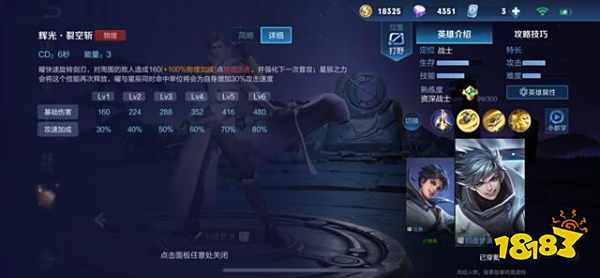一技能强化-辉光裂空斩:曜快速旋转剑刃,对周围的敌人造成160(100%物理加成)点物理伤害,并强化下一次普攻,星辰之力会将这个技能再次释放,曜与星辰同时命中单位将会为自身增加30%的攻击速度。