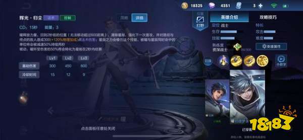 大招-归尘:曜释放力量,回到2秒前的位置(无法移动超过600距离),清除星削,并对路径与终点的敌人造成300(+120%物理加成)点法术伤害。