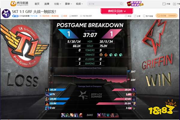 第二局双方换边阵容不变,但首局被Khan牢牢压制的GRF上单迎来爆发。在连续击杀Khan后,凯南的单带让T1疲于奔命,中期更是完成惊天1V2,最终GRF大龙团打出0换3后一波结束比赛扳平比分。第三局Faker拿出招牌妖姬,前期T1针对中上打开局面,但GRF迅速Gank下路挽回局势,在大量人头和资源互换后双方保持均势。中期河道关键团战,T1灵性走位打出1换4完美团战拿下大龙奠定胜局,携大龙Buff他们赢下决胜局。