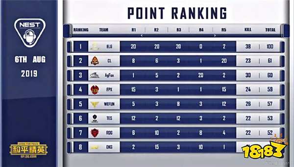 8月6号下午,2019年NEST和平精英项目结束了晋级赛A组第一个比赛日的对抗。代表A组最强实力的ELG战队发挥完美,在五场比赛中,惊人地拿下了三次吃鸡的华丽数据,更是在积分榜上遥遥领先第二名39分,成为本个比赛日的最大赢家,备受瞩目的4am战队暂时以42分的成绩排在第12位。