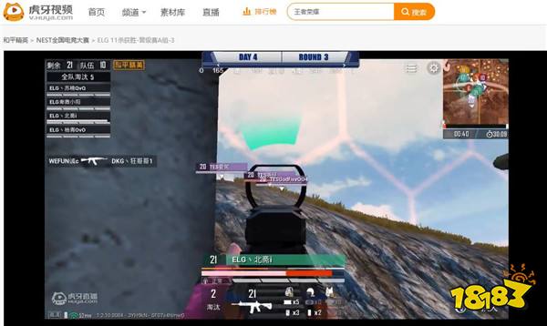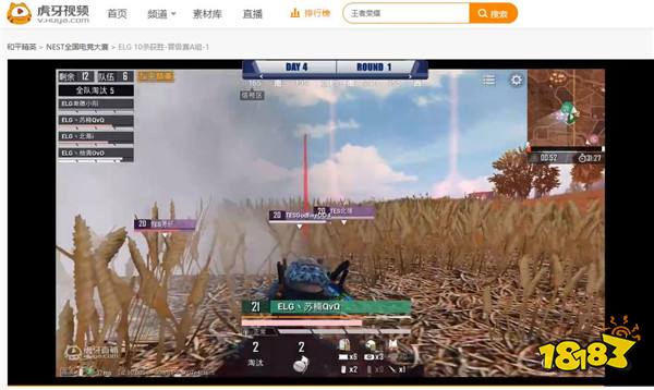 比赛刚一开始,ELG战队就展现了他们强大的统治力,以满编配套的阵容,杀入了最后的决赛圈。本回合的决赛圈处在麦田中央,不仅地形非常开阔,伏地魔在进行蹲伏时,也很容易被发现,这就意味着各支战队要通过正面的钢枪来决一死战。FPX,TES等国内豪门都准备在这里大显身手。尤其是刚从PMCO上归来的TES,在第一局对抗中,给ELG带来了不小的考验,两支虎牙战队利用石头和汽车展开了激烈的绕圈追逐战,最终ELG更胜一筹,借助人员上的略微优势,拿下第十个人头,帮助自己取得了开门红。