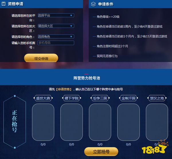 2. 请大家先在【申请资格】提交申请,申请成功后,可以确认自己属于哪个势力阵营;