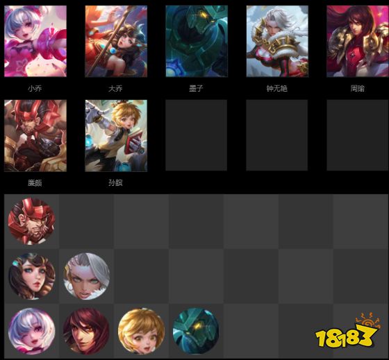 选择3:孙策+孙尚香,组成5吴国,削蓝。适合针对法师阵容