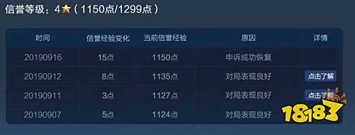 在之前的版本,信誉经验是每天结算一次的,但是玩家只能看到增加或者减少多少数值,而具体的规则并没有公布,玩家也很困惑,在新版本官方也对信誉经验进行了优化,在每一行信誉经验变动上都增加了“点击了解”按钮,以便召唤师们进一步查看自己的加点和扣点细项。