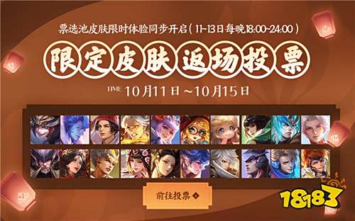 票选皮肤返场上架时间:2019年10月26日~2019年10月28日。