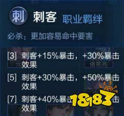刺客羁绊效果必杀:刺客相互配合会更加轻松的发现敌方弱点,更加容易命中要害。