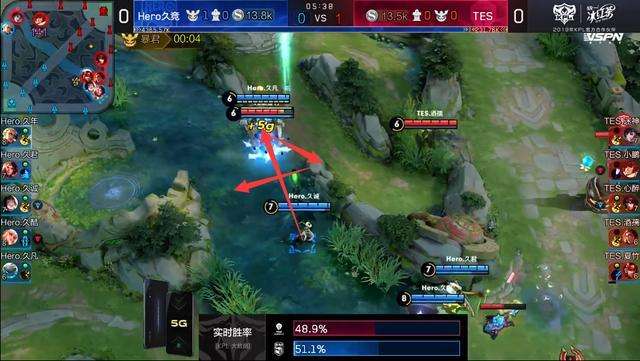 虽然这波团战双方打成了2换2,但Hero顺势推掉了TES中下两座外塔,野区被完全打开,Hero得以迅速拉开经济,通过经济碾压赢下比赛。