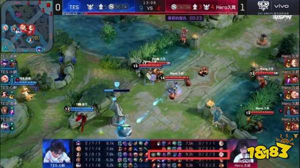 但这一局Hero开局天崩,前期人头比TES5:0Hero,久诚的嫦娥被杀两次。此时久诚的大法师属性开始显现,久诚开启了熟悉刷钱模式,不知不觉中在13分钟刷到经济全场第一,不亏是前几个赛季最会打钱的中路选手。