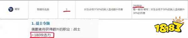 比如“战士令旗”能加180点的物攻,两星装备中物攻加成最高的“泣血之刃”也只加120点的物攻,三星的“破军”也只加200点物攻而已。所以但就数值加成来讲,“职业令旗”都已经是超二星的装备了。