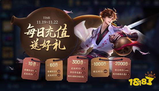 以上就是王者荣耀每日充值活动时间,大家都可以了解下。关注18183王者荣耀官网,里面有更全面的游戏攻略为大家一一分享。