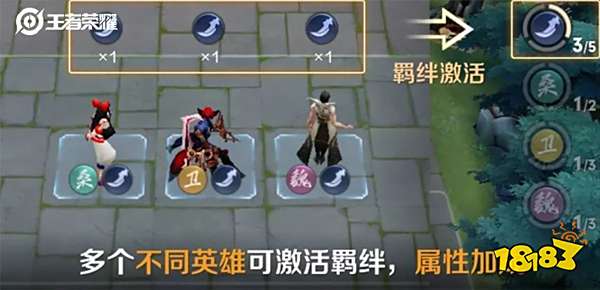 在王者模拟战中羁绊一共分为两大类:职业和阵营羁绊,如果我们在游戏中使用一样羁绊的英雄的话就会获得一个额外的效果,上场的越多效果越好,这个呢我们可以在游戏屏幕的右边看到。