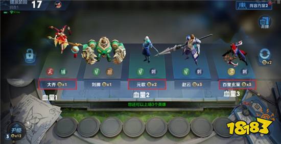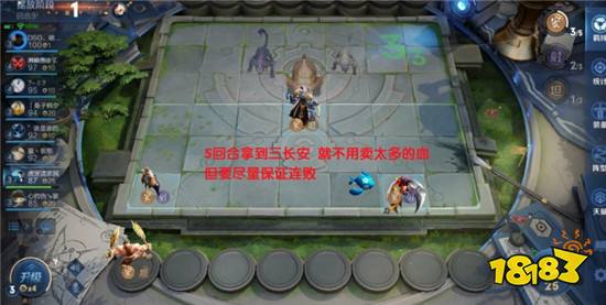 第二回合之后,如果没有三长安的情况下,尽量在对局的时候把损失的血量控制在5滴血,这样可以获取一次免费刷的机会。多一次刷牌的机会就可以保证自己早点找到3长安。