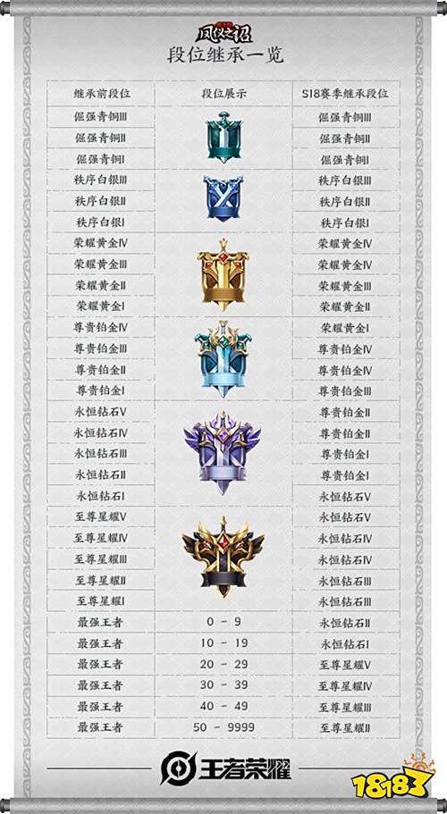以上便是王者荣耀s18赛季段位继承规则最新消息,希望对各位小伙伴有帮助。更多最新游戏资讯请关注18183王者荣耀专区!
