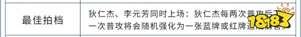 最佳拍档 ※天赋分类※ 通用 ※天赋属性※ 狄仁杰、李元芳同时上场:狄仁杰每两次普攻后下一次普攻将会随机强化为一张蓝牌或红牌造成伤害。