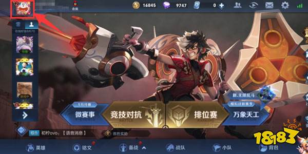 1、进入王者荣耀游戏中,点击主页左上角的头像。