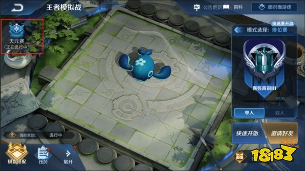 排位是有巅峰的,那么王者模拟战自然也是有,这个新出的天元赛就是下棋的巅峰赛,每天是中午12点至零点开放,没有段位要求,任何玩家都可以去参加。