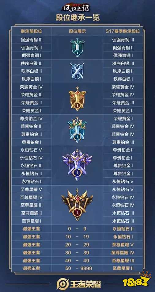 好了,上面就是王者荣耀s18赛季段位继承规则分享,希望能帮助到大家。如果想知道段位、英雄、皮肤等相关攻略的,都可以收藏进入18183王者荣耀官网查看。