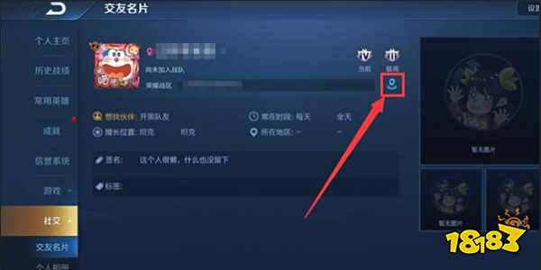 2、进入资料界面后点击界面左侧的社交交友名片标签。
