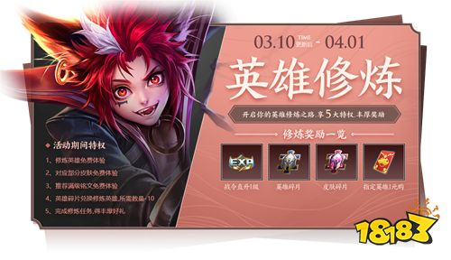 英雄修炼这个活动主要是鼓励玩家练英雄,拓宽自己的英雄池,然后让对局中获得更好的体验!