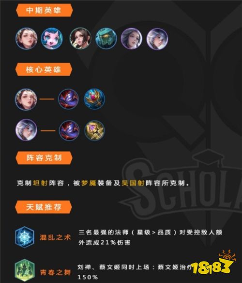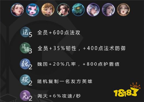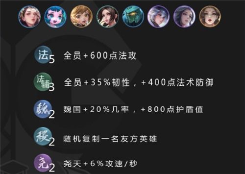 这套阵容8人口即可成型,9人口视具体的情况而定:如果对战法师阵容,可以上4法辅;如果有青春之舞,可以增加刘禅;另外也可以挂两个武则天或者两个奕星。