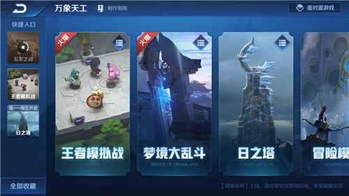 在众多模式中,为了让召唤师可以更便捷地选择喜欢的玩法,策划大大对万象天工及官方娱乐模式选择界面进行了调整优化: