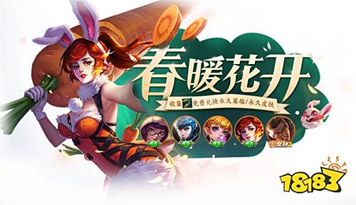1. 春暖花开活动持续进行中,参与活动收集道具免费得永久皮肤/英雄,每日对局有机会抽永久英雄。