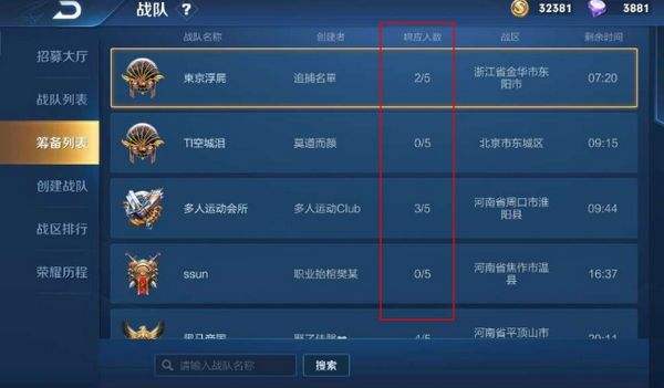 玩家创建玩战队后会显示在战队筹备列表中,其他玩家可在筹备列表中查看处于筹备期的战队直接加入。或者直接邀请还没有加入战队的好友,直接在列表寻找拉入。也可以在游戏大厅中用金色喇叭在公屏中邀请别人加入自己的战队。