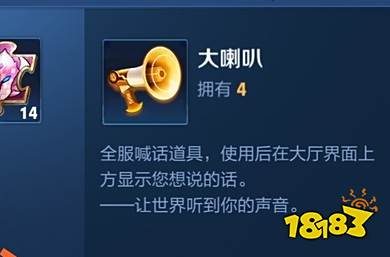 2、王者荣耀中的大喇叭是用来进行全服喊话的,使用后你想说的话会在大厅界面上方显示出来。