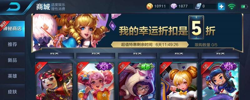 玩家进入神秘商店之后,就是抽取折扣环节,之后显示本次折扣活动中的英雄、皮肤。