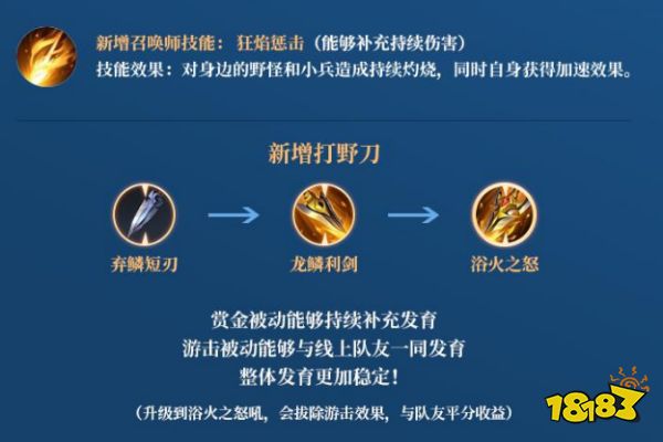 弃鳞短刃系列打野刀登场,被动可以累积赏金补充经济,也可以在帮助线上召唤师清兵时不影响线上召唤师原本的发育了!