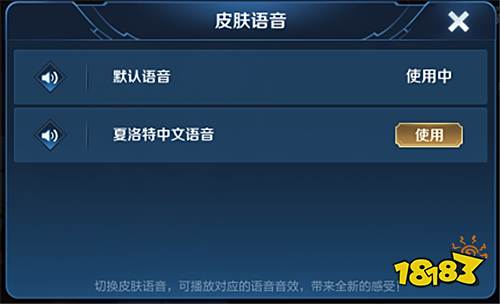 首先在夏洛特熟练度等级达到【3级蓝色】之后,中文语音就会自动激活,前往夏洛特的英雄界面,点击【语音】按钮,便能进入下图所示的【皮肤语音】界面。点击中文语音右边的【使用】,就能在局内听到中文语音了。