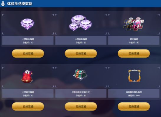 2.体验服对局获得的体验币可兑换各种正式服奖励;