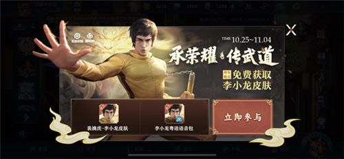 4. 免费获取李小龙皮肤活动巨额经验获取,可直接解锁李小龙皮肤;