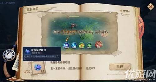 对局胜利后进入峡谷探索,根据提示找到4个能量点并使用灵影刻印进行拍照即可。