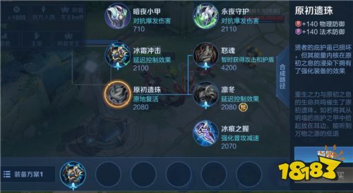 首先合成凛冬的前置装备,为【原初遗珠】+【冰霜冲击】,其中冰霜冲击是可以直接购买的,重点是【原初遗珠】这个东西无法直接购买,必须在你【复活甲复活两次废掉之后】,才能获得和购买。