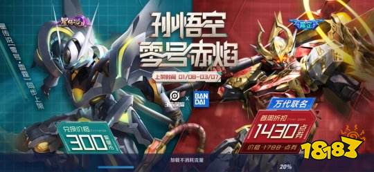 孙悟空全新限定联动万代皮肤上线,将在1月8日凌晨0点正式上架(1.8~3.7),首周折扣1430点券,其星传说也限时上架魔法球奖池(1.8~3.7),并开启魔法球限时折扣活动(1.8~1.11)。