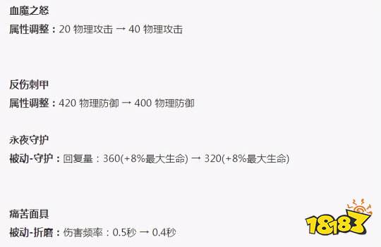 永夜守护削弱:回血量降低。