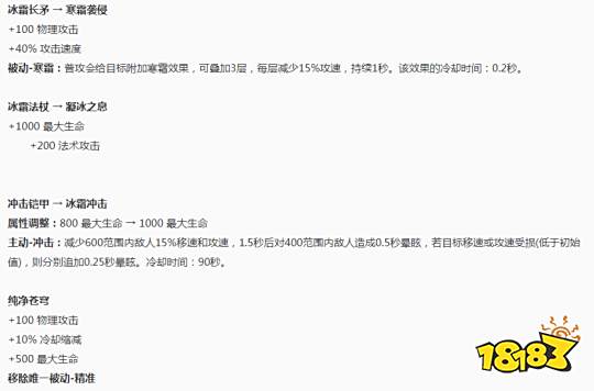 冰霜长矛调整:属性改变,持续减少攻速。