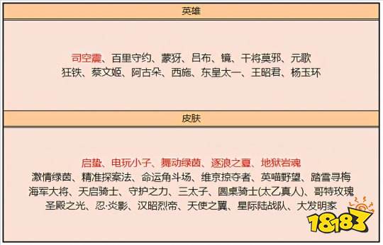 电玩小子、逐浪之夏、地狱岩魂、舞动绿茵这四款史诗皮肤上架,其中电玩小子已完成优化,并在本次更新中上线,而启蛰则是新英雄司空震的伴生皮肤。其次,还有汉昭烈帝、守护之力等精品皮肤可供兑换。