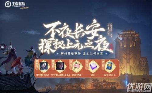 王者营地“探秘上元之夜”活动开启啦!来王者营地收集宝相花,探秘英雄上元之夜的故事,必得双倍金币卡、亲密玫瑰等奖励。还有机会赢取司空震永久英雄、司空震-启蛰永久皮肤!
