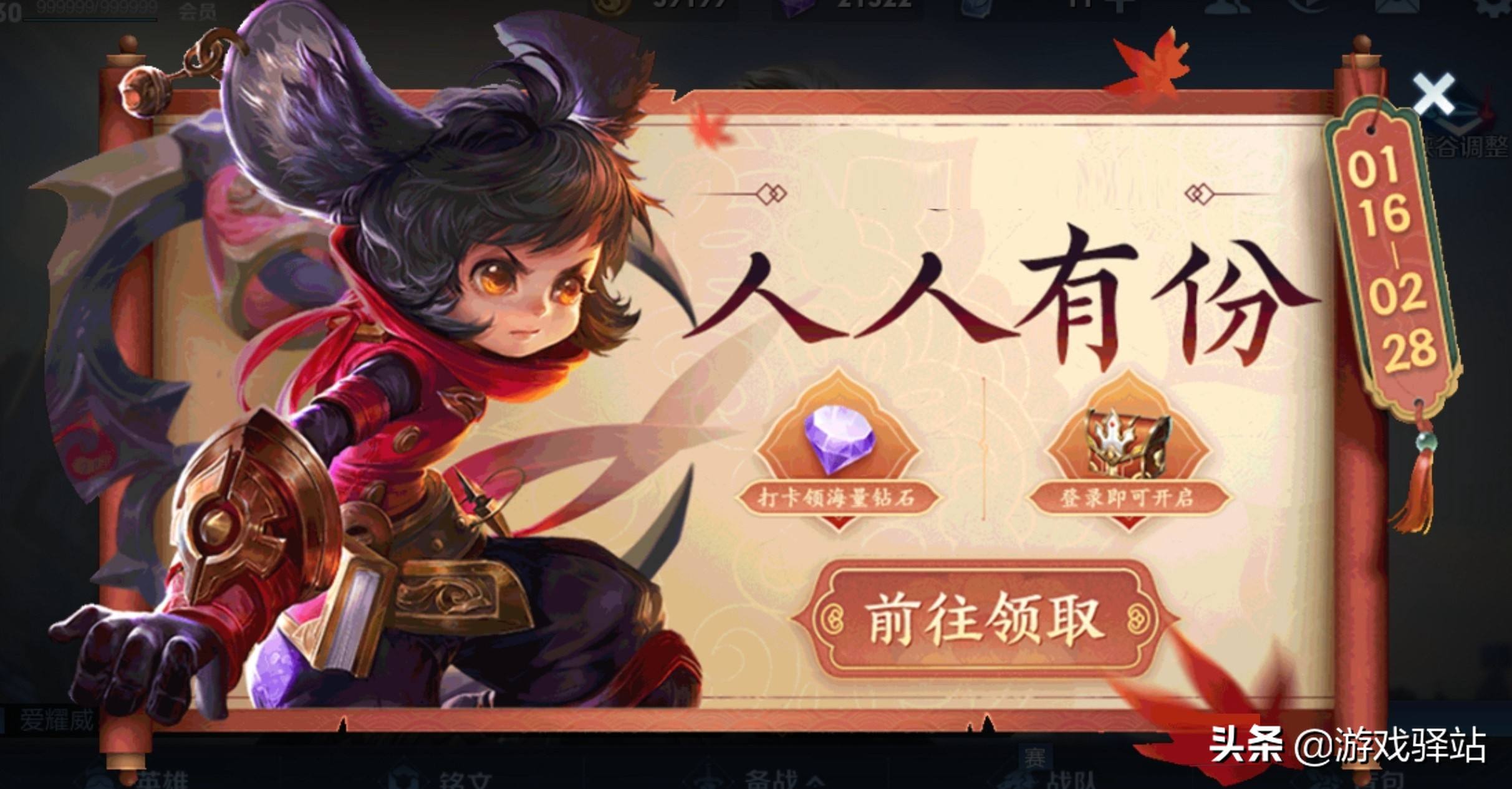 这次官宣通过王者荣耀新开启的手Q商店活动告知,活动持续至28号结束,期间玩家除了可领取年终幸运宝箱,小编开启后获得皮肤体验卡,参与打卡的玩家还能得到钻石铭文碎片,以及李信灼热之刃、诸葛亮黄金分割率皮肤体验卡等奖励,当然奖励还是次要,最主要的是官方展示了1月和2月的活动时间轴,包含了已经上架的司空震和狄仁杰赛季皮肤,以及牛年春节限定皮肤的上线排期!