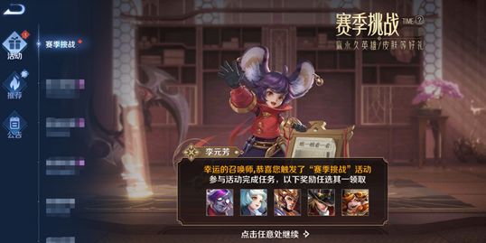 活动入口:活动面板-活动-【赛季挑战】送英雄皮肤