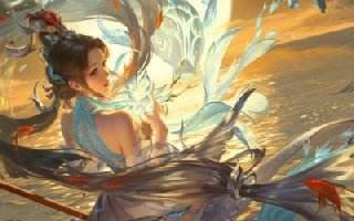 美好的祈福声汇聚起来,江面上一黑一白两尾石鱼盘旋而起、跃出江面,其石鳞内部发出丝丝幽光,连带起周围的小鱼也跟着盘旋变化——在鱼群的簇拥下,黑色的那尾鱼幻化成大乔的本体,白色的石鱼则凝成了她的法杖,夕阳西下波光粼粼的江面上,武器顶端的蓂草开始发出清冷的光芒——她手捧着莲花,嘴唇微动,江水及万千生灵便听到神女之声在天地间温柔地回响、散开……