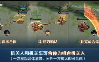 需要一个机关人玩家、一个机关车,相互靠近会有提示——请求合体,确认之后可以合体,刷新变身时间,增加生命值,并获得一个10秒的能量墙,可以阻挡远程技能。合体之后,那真的就是超超超级兵了!塔的伤害,在机关面前都不值一提了,如果还没有变身成组合机关的玩家,此时在对战中就非常吃亏,被追着满峡谷打。