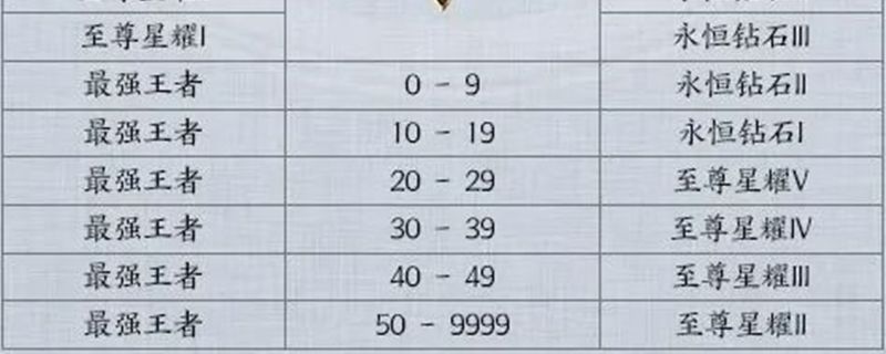 王者荣耀50星王者及以上,在新赛季将会继承为星耀二,40~49星会继承到星耀三,30~39星继承到星耀4,20~29星继承到星耀5,10~19星会继承到钻石1,而9星以下则继承到钻石2。