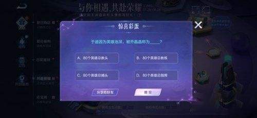王者荣耀S24赛季开启了全新活动与你相遇共赴荣耀,这个活动会问一些游戏小问题,需要玩家答对才可获得奖励,那么就快来一起看看答案吧。
