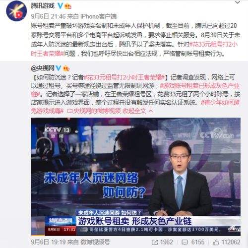 针对花33元租号打2小时王者荣耀问题,腾讯游戏回应称,账号租卖严重破坏游戏实名制和未成年人保护机制,截至目前,腾讯已向超过20家账号平台和多个电商平台起诉或发函,要求停止相关服务。呼吁尽快出台相应法规,严格管制帐号租卖行为。