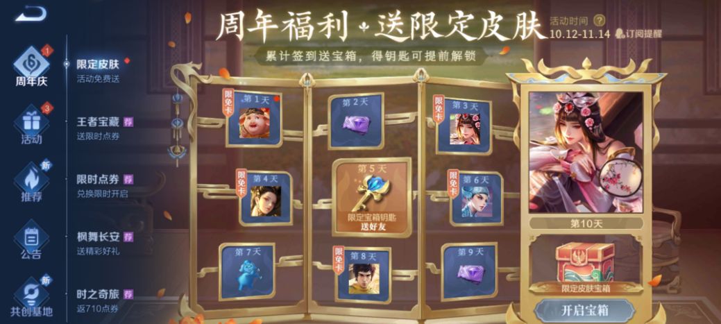 王者荣耀六周年庆还有【祈愿】活动,可以拿到永久皮肤、永久英雄等等。