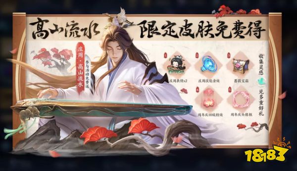 玩家通过累计登录和每日实战获得灵感值,消耗灵感值可兑换六周年限定皮肤(庄周-高山流水)和蔷薇之心,活动预计将在10月18日下午限时开启。